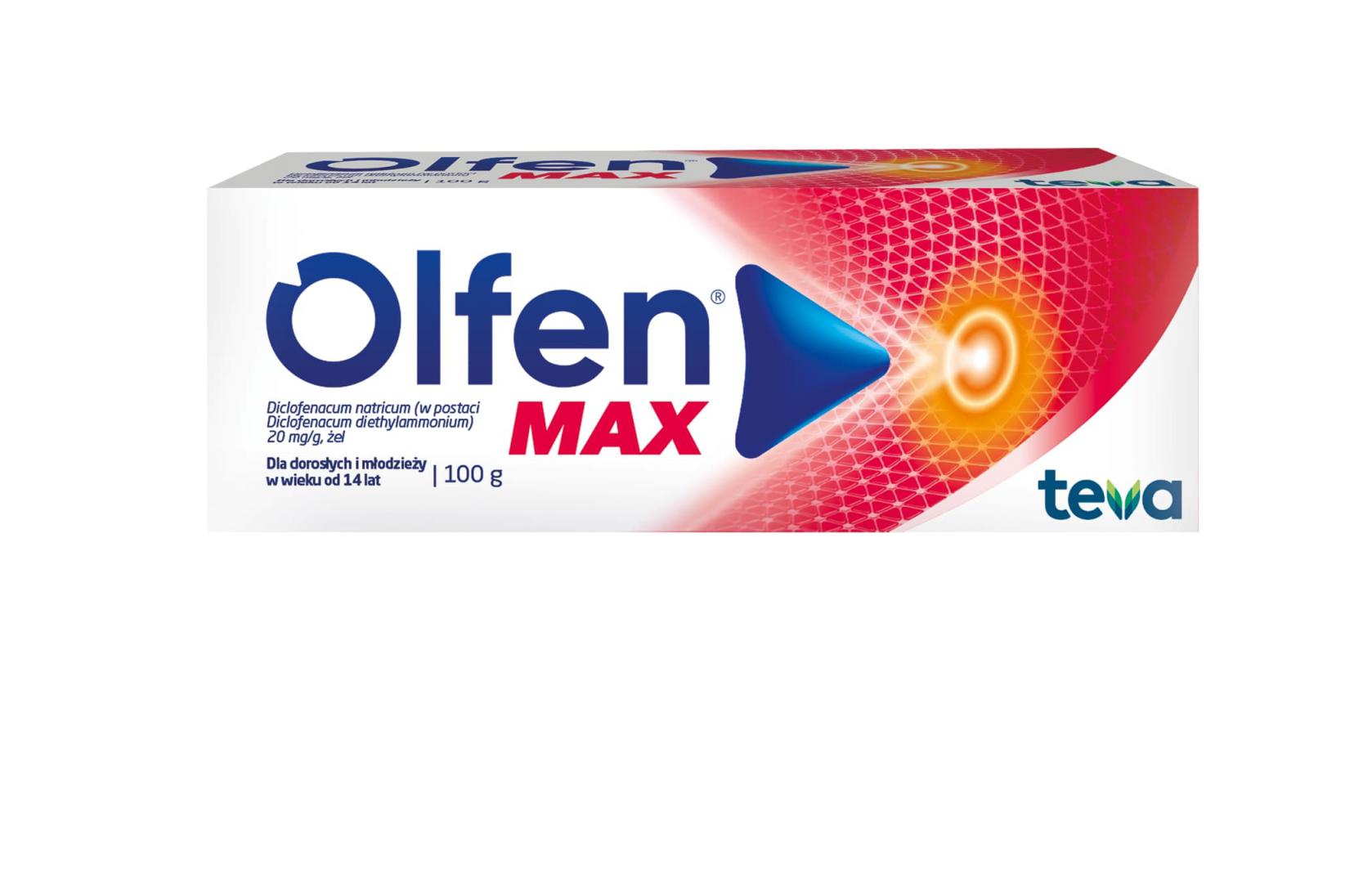 Olfen Max to lek w formie żelu przeznaczony do stosowania na skórę w objawowym leczeniu bólu w ostrych nadwyrężeniach, skręceniach lub stłuczeniach wywołanych tępymi urazami. Wskazany dla osób dorosłych oraz młodzieży od 14 roku życia. Zawiera substancję czynną diklofenak, należącą do grupy leków zwanych niesteroidowymi lekami przeciwzapalnymi (NLPZ). Ma działanie przeciwbólowe, przeciwzapalne i przeciwobrzękowe.