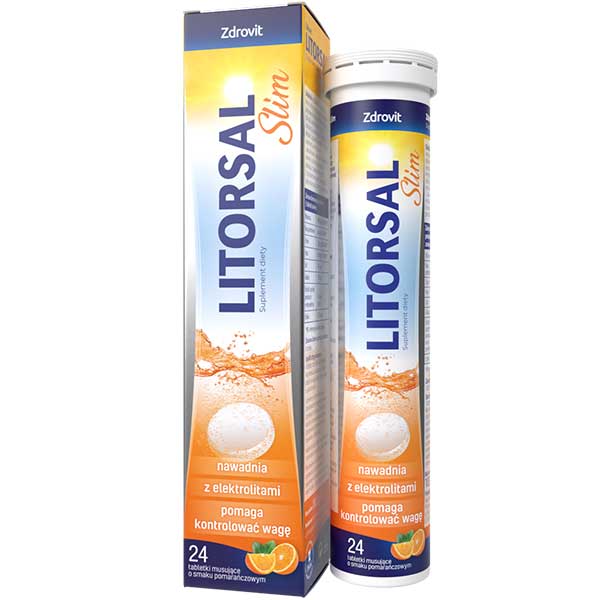 Zdrovit Litorsal Slim to suplement diety w postaci tabletek musujących o pomarańczowym smaku. Preparat z elektrolitami (sód i potas) wykorzystuje mechanizm wspólnego transportu cząsteczki glukozy i jonu sodu przez błonę komórkową nabłonka jelitowego, który jest podstawą teorii nawadniania doustnego. Formuła została dodatkowo uzupełniona o składniki takie jak ekstrakt z gorzkiej pomarańczy, chrom, witamina c, kwas pantotenowy i cholina.
